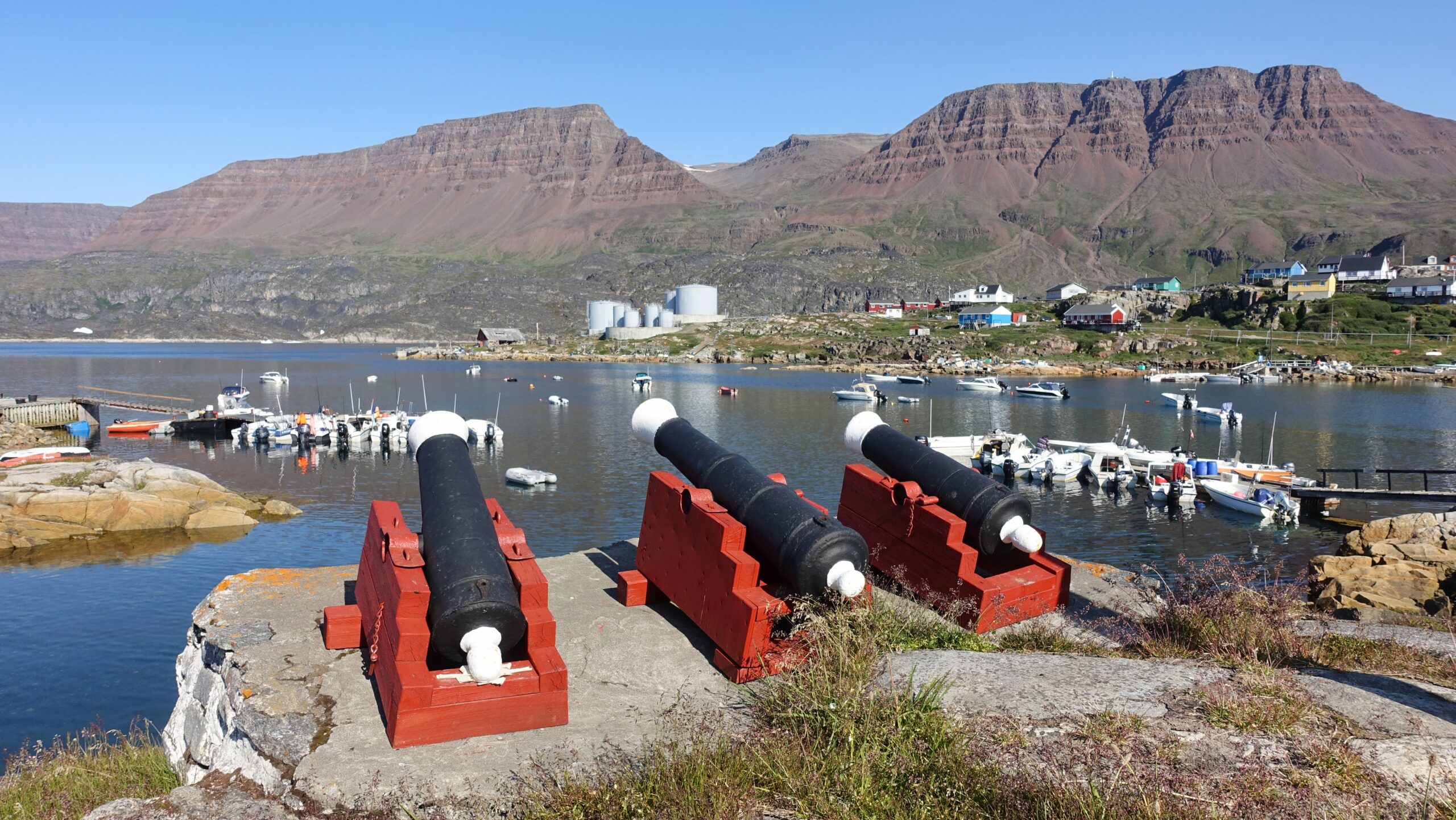 Disko Island (Qeqertarsuaq, or Large Island), is geologically unique and has held cultural significance since the era of Eric the Red. Unlike the rest of Greenland, it is volcanic and the landscape therefore deviates heavily from the mainland, featuring high table mountains, black sand beaches, and basalt rock formations. The modern settlement Qeqertarsuaq (also named Qeqertarsuaq, and formerly Godhavn), grew out of the whaling industry to be Greenland’s second city and administrative centre for the North until 1940 when control was centralised in Godthab (now Nuuk). Interestingly, it is also the only place in the world with large deposits of native iron (non-meteoric and found naturally in metallic form). The knives made by local Inuit are therefore entirely unique.