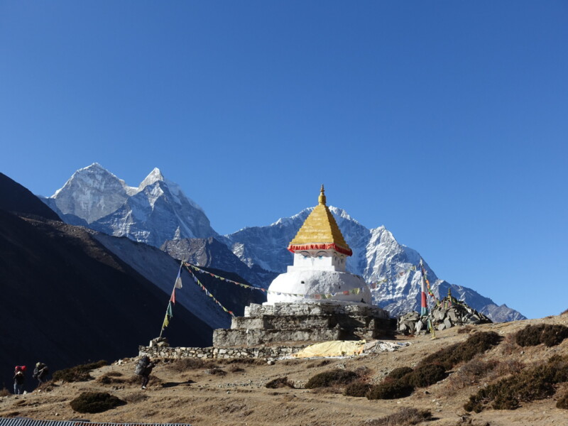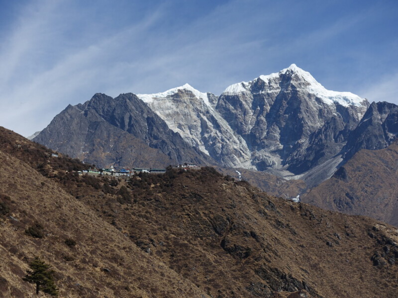 I would spend a full day acclimatising in Namche, with a trip to the Sherpa Museum and a short hike up to Everest View Hotel (3880m). The Sherpa Museum was underwhelming. I was hoping for more cultural insight than a few panels on Tenzing Norgay – Oh well. The Everest View Hotel is a stop for all trekkers. The name is slightly misleading though, as one only sees the smallest sliver of Everest proper (Lhotse’s south face blocks). Trekkers can enjoy tea on a terrace featuring panoramic views of Lhotse, Ama Dablam and Tobuche. The helicopters were also doing good business shuttling rich tourists in for a posh brunch. Not really my thing though.