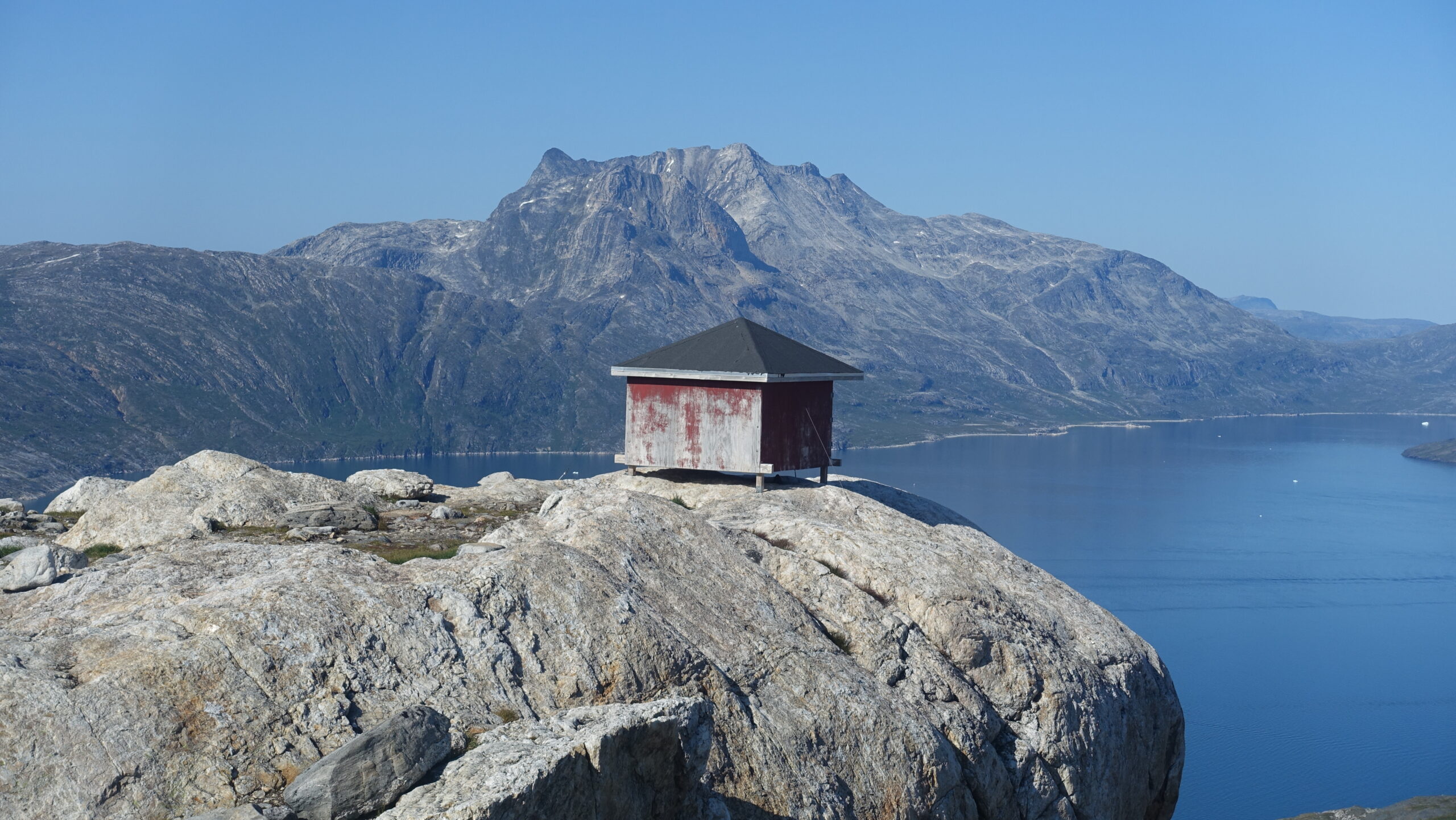 I slogged out to the prison one last time and carried on the same direction as I had the previous evening. But instead of turning south to ascend Kangilequtaat, I carried on east. Along the way there was Nedkørslen, a shelter with quite the view – though I had a better version of the same view the previous evening. There was a large flat area behind the shelter that would have been perfect for camping, The midnight views over Nuup Kangerlua would be amazing.