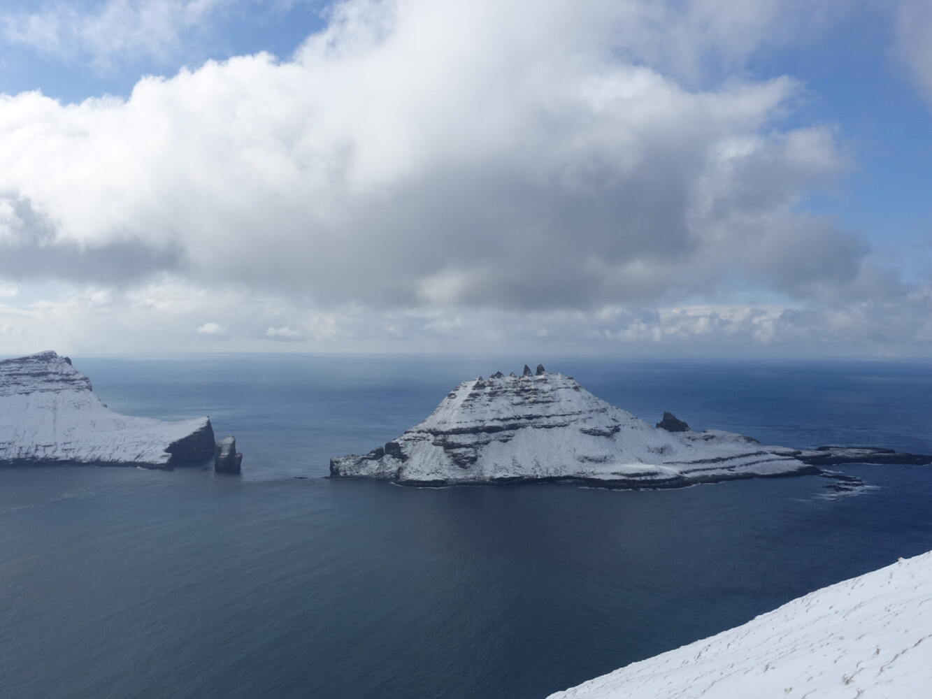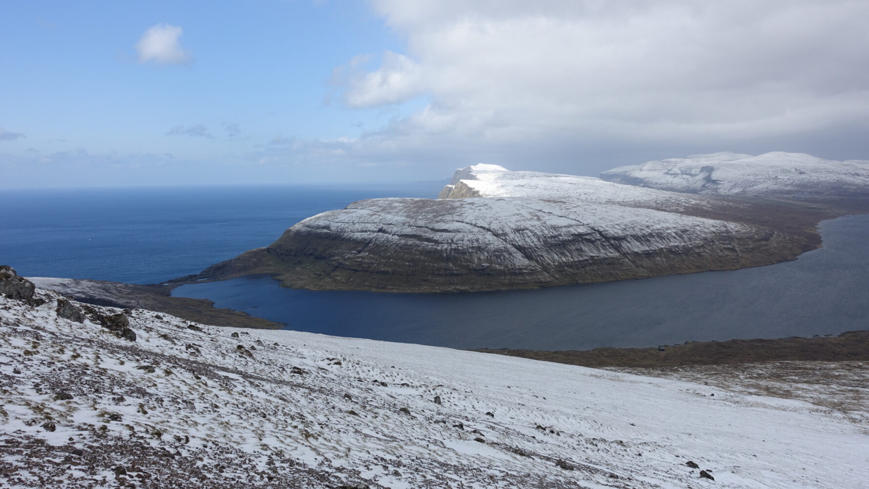 The next morning, I was excited to see a heavy layer of snow and mostly clear skies! I had tentatively planned to do a big circuit from Bøur to Gasadalur and along Vágur’s western cliffs. I couldn’t have asked for more favourable conditions! Unfortunately, like most else on this trip, things would not go to plan.