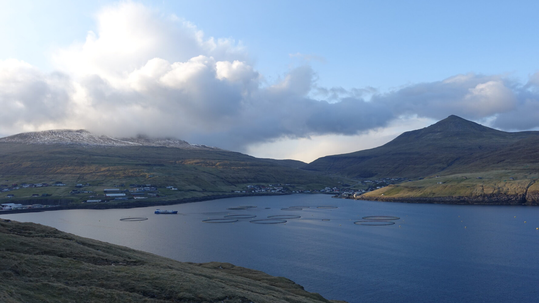 I clearly hadn’t had enough, so after a rest and some calories, I headed back out in the evening! The snow had melted, but I returned to the region across the harbour from Miðvágur.